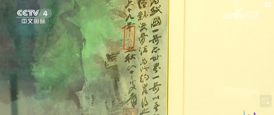 總臺(tái)央視記者 孫雨彤:這幅作品就是由張大千在1980年創(chuàng)作的《阿里山曉色》。張大千曾以“阿里山”為題材,創(chuàng)作出兩幀四尺整紙橫幅,這就是其中一件。畫上有題款“嘉義阿里山曉色為我國(guó)一奇,亦世界一奇”。