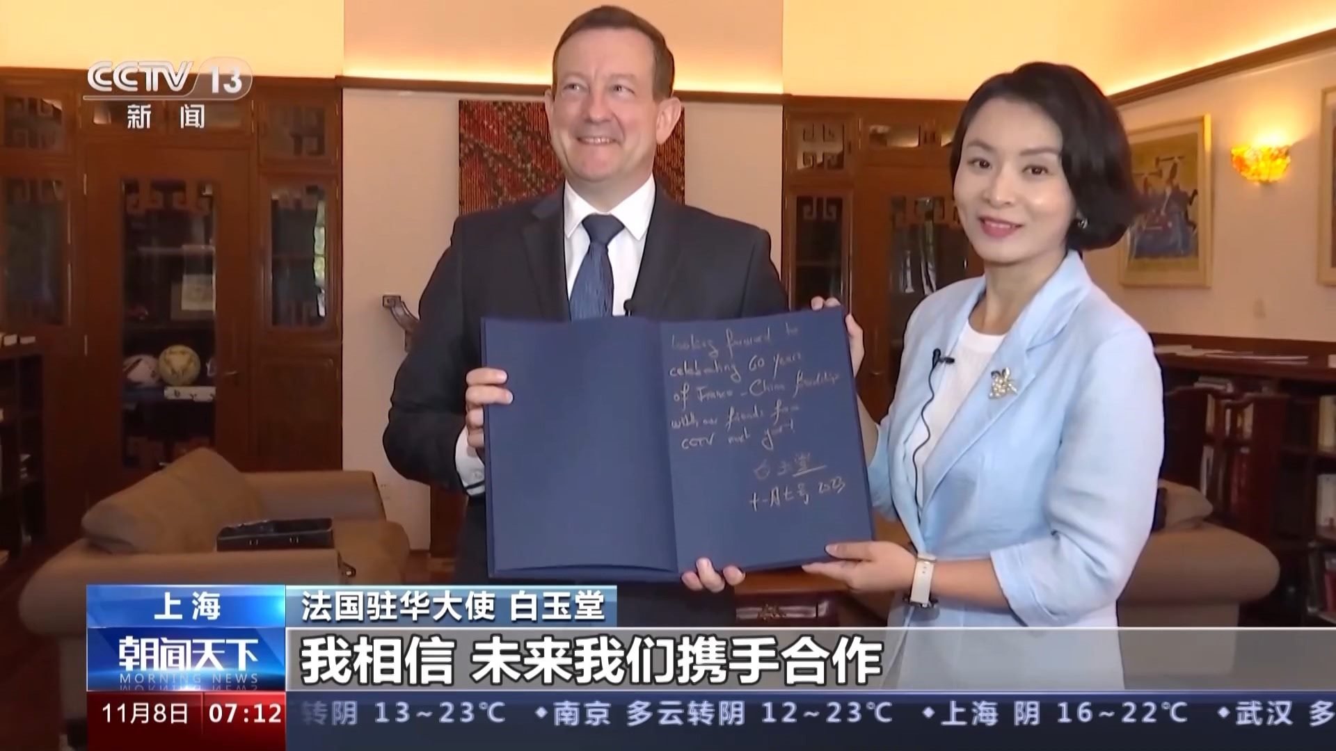 法國駐華大使 白玉堂:今年馬克龍總統(tǒng)訪華,我認為兩國領導人傳達的關鍵信息之一,就是我們兩國比以往任何時候都更需要加深合作和相互理解。事實上,自從這次馬克龍總統(tǒng)訪華以來,我們已經做了很多的工作,以各種可能的方式提高法國在中國的曝光度,比如說經濟和貿易領域,因此也有了法國企業(yè)在今年進博會的大規(guī)模亮相,我們希望中國人民和法國人民建立強有力的聯系。我認為現在我們兩國人民需要更多的交流,我們渴望并十分愿意越來越多的中國朋友到訪法國。當然也期待越來越多的法國人,不管是商人、游客,還是學生都來到中國。我們將竭盡所能支持和促進所有的這些交流活動。我相信,未來我們攜手合作,能夠取得比過去更為豐碩的成果。(總臺央視記者 李晶晶 王晨 趙迎晨 黃一宸)