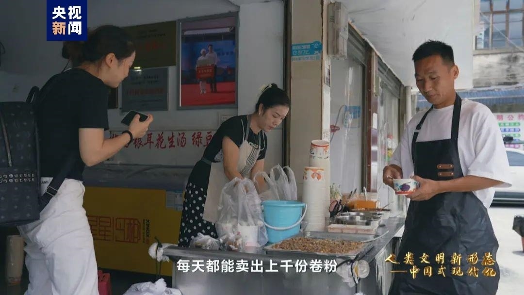 如今,董永恒的店里每天都能賣出上千份卷粉。卷粉掙錢、踢球圖樂(lè),口袋鼓起來(lái)、體質(zhì)強(qiáng)起來(lái)、日子美起來(lái)。