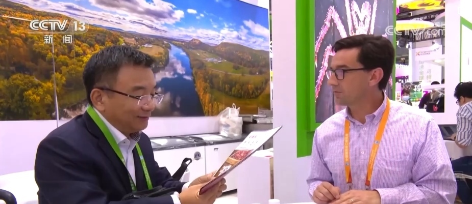 進(jìn)博會(huì)的最后一天,記者來(lái)到美國(guó)食品和農(nóng)產(chǎn)品館時(shí),美國(guó)參展商克里斯依舊在緊張地和客戶(hù)對(duì)接洽談,此時(shí)距離閉幕只剩下不到6個(gè)小時(shí)。
