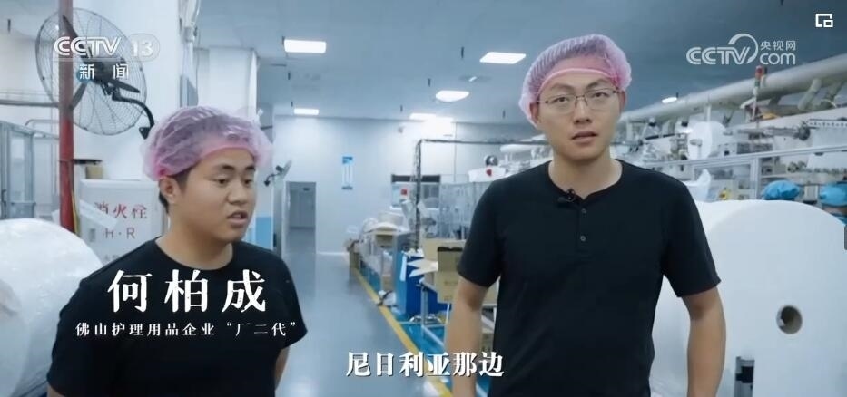 記者:現(xiàn)在方方(方菁)在給她的非洲客戶打視頻電話,來給她更直觀地看,這個紙尿褲在中國的工廠是怎么生產(chǎn)出來的。