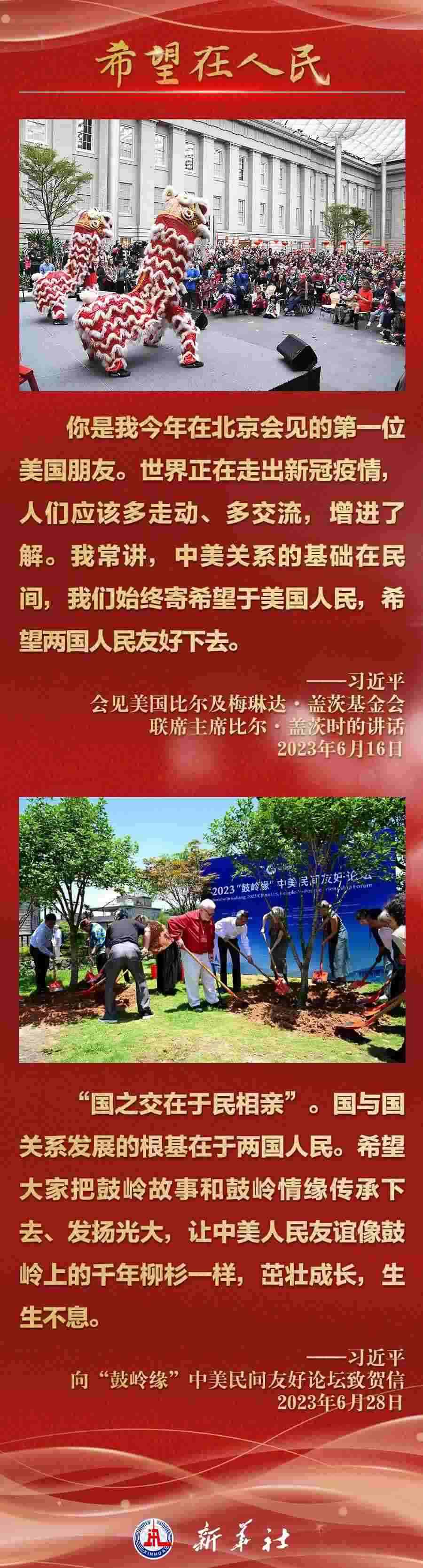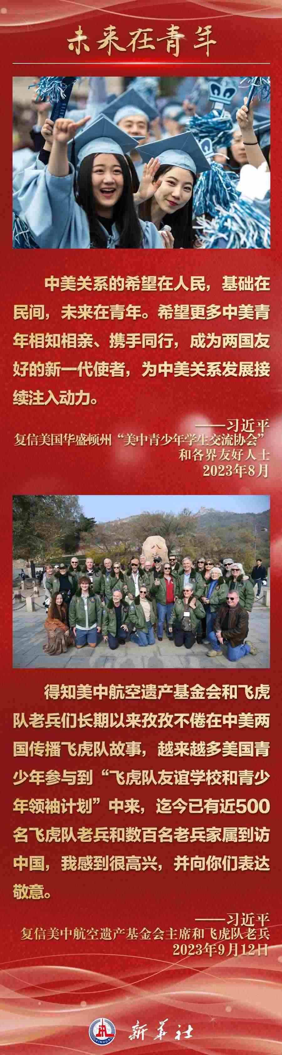 今年以來,從在京會見美國各界人士,到向“鼓嶺緣”中美民間友好論壇等活動致賀信,再到復(fù)信美國華盛頓州“美中青少年學(xué)生交流協(xié)會”、史迪威將軍后人、飛虎隊老兵等友好人士,習(xí)近平主席同美國各界真摯互動,強(qiáng)調(diào)中美關(guān)系基礎(chǔ)在民間,希望在人民,未來在青年,活力在地方。