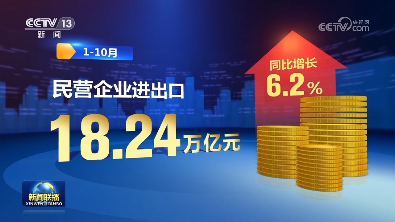 新動(dòng)能帶動(dòng)作用持續(xù)釋放,推動(dòng)外貿(mào)領(lǐng)域積極因素累積增多。前三季度跨境電商進(jìn)出口額達(dá)1.7萬億元,同比增長14.4%,保持較快增長。貿(mào)易結(jié)構(gòu)優(yōu)化升級,1—10月,我國一般貿(mào)易進(jìn)出口增長1.8%,占我國外貿(mào)總值的64.9%,比去年同期提升1.1個(gè)百分點(diǎn)。民營企業(yè)進(jìn)出口18.24萬億元,同比增長6.2%,成為穩(wěn)外貿(mào)主力軍。
