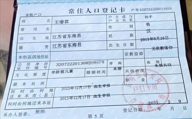 ·江蘇一老漢戶口簿莫名多了個10歲“孫子”,多部門介入調查。
