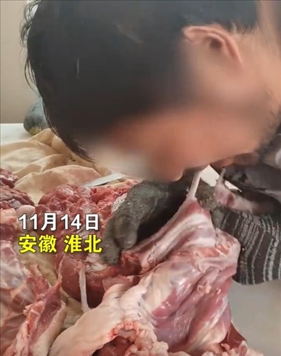 ·網(wǎng)曝安徽淮北一家肉店員工用嘴剔肉,店主稱是幾十年老手藝,當?shù)厥斜O(jiān)局:系搞噱頭擺拍。