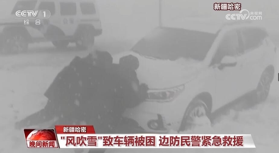 新疆哈密:“風吹雪”致車輛被困 邊防民警緊急救援
