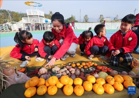 浙江省湖州市長(zhǎng)興縣李家巷鎮(zhèn)中心幼兒園開(kāi)展“冬日校園 樂(lè)享豐收”校園豐收節(jié)主題活動(dòng)。孩子們?cè)诶蠋煹膸ьI(lǐng)下參觀豐收節(jié)農(nóng)作物展、手工藝品展,還參加挑擔(dān)子、運(yùn)蘿卜、接力送玉米等趣味運(yùn)動(dòng),學(xué)習(xí)知識(shí)、鍛煉身體,感受豐收帶來(lái)的喜悅。