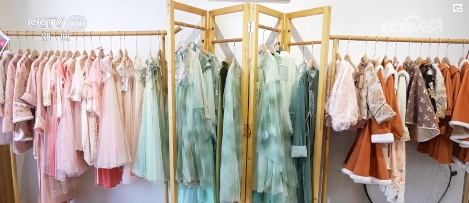 剛開(kāi)始,這家漢服店只100多套衣服,隨著客流增多,服裝也不停地補(bǔ)充,現(xiàn)在已經(jīng)有大幾百套的漢服,全店上下每天從早到晚一直都要忙著招待。隨著客人不斷變多,他們所在街上的其他商家也紛紛開(kāi)起了漢服店。一年之間,這里從曾經(jīng)的汽修一條街,變成了擁有5000多名從業(yè)者的漢服一條街。