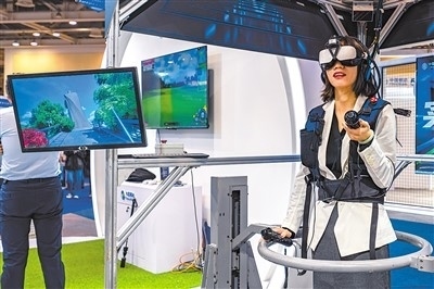 第二十一屆中國(guó)(蘇州)電子信息博覽會(huì)日前在蘇州工業(yè)園區(qū)舉辦。圖為觀眾在博覽會(huì)上體驗(yàn)5G+元宇宙游戲。張 鋒攝(人民視覺)