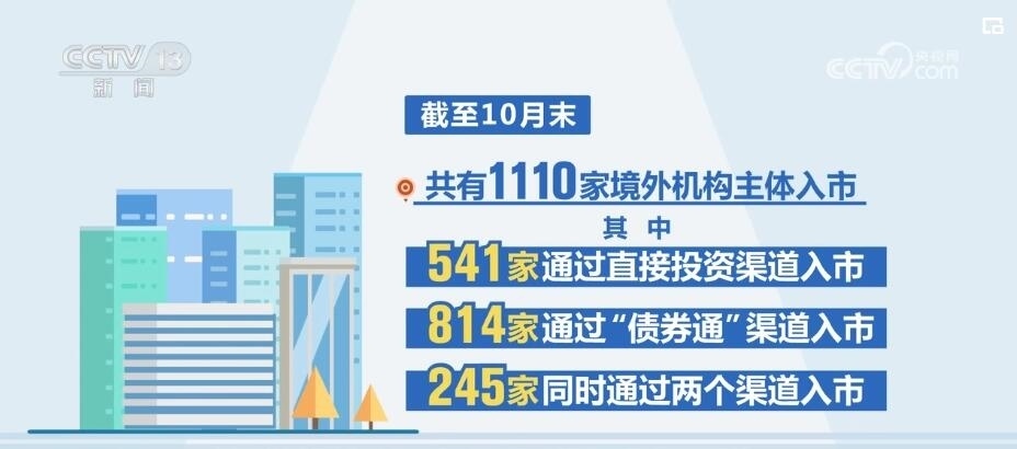 在資金凈流入的同時,銀行間債券市場的境外機構參與數(shù)量也在不斷增加,截至10月末,共有1110家境外機構主體入市,其中541家通過直接投資渠道入市,814家通過“債券通”渠道入市,245家同時通過兩個渠道入市。