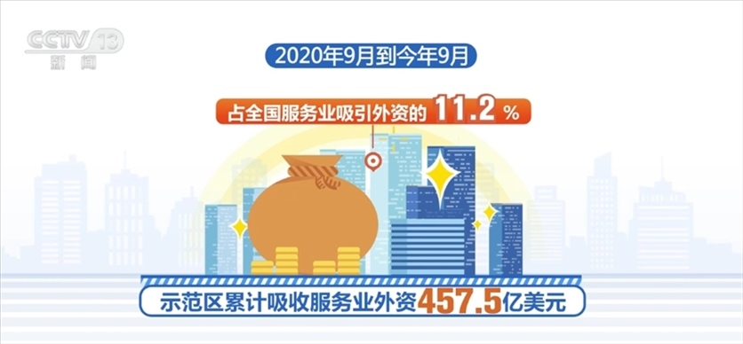 2020年9月到今年9月,示范區(qū)累計吸收服務業(yè)外資457.5億美元,占全國服務業(yè)吸引外資的11.2%;今年上半年,示范區(qū)服務業(yè)增加值占北京市地區(qū)生產(chǎn)總值比重達85.9%。