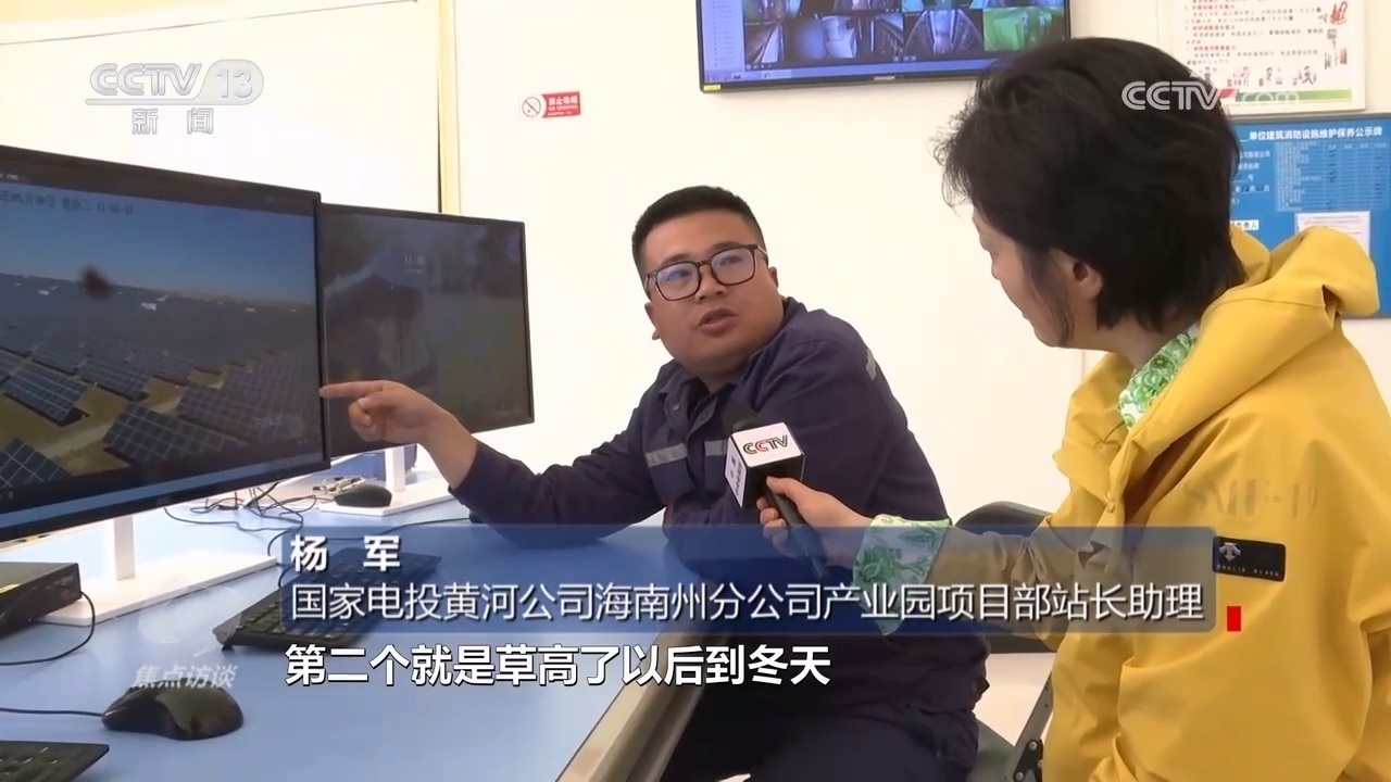 國家電投黃河公司海南州分公司產(chǎn)業(yè)園項(xiàng)目部站長助理?xiàng)钴姡骸肮夥逑旅孢@些羊,就是我們請(qǐng)過來幫忙除草的。因?yàn)槊磕暌坏较奶?,園區(qū)電池組件下面草就特別高,長高了以后會(huì)遮擋電池組件,一個(gè)是影響發(fā)電效率,再一個(gè)秋冬季有火災(zāi)隱患?!?/p>