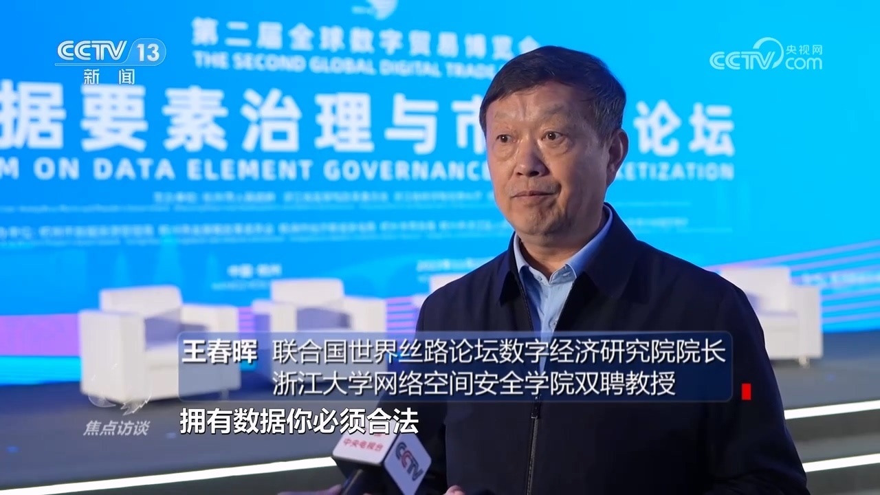 聯(lián)合國世界絲路論壇數(shù)字經(jīng)濟(jì)研究院院長、浙江大學(xué)網(wǎng)絡(luò)空間安全學(xué)院雙聘教授王春暉:“一個(gè)是法律層面的清晰,一個(gè)是經(jīng)濟(jì)方面的清晰,就是擁有數(shù)據(jù)必須合法,不能違法擁有數(shù)據(jù),擁有數(shù)據(jù)合法的情況下,可以加工利用,發(fā)揮對數(shù)據(jù)的整個(gè)價(jià)值的利用?!?/p>
