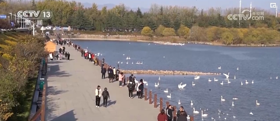 據(jù)觀測,2023年前來三門峽天鵝湖國家城市濕地公園越冬的天鵝將達到2萬只,還有很多不同種類的候鳥和它結伴而至,在這里結成了“雞鴨鵝”朋友圈。