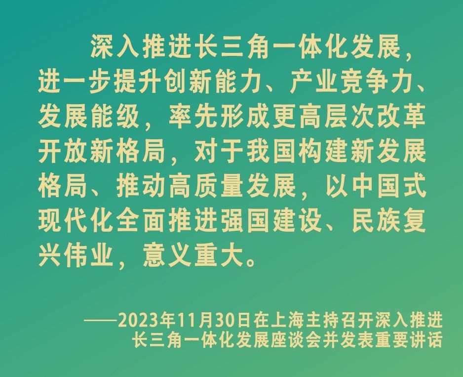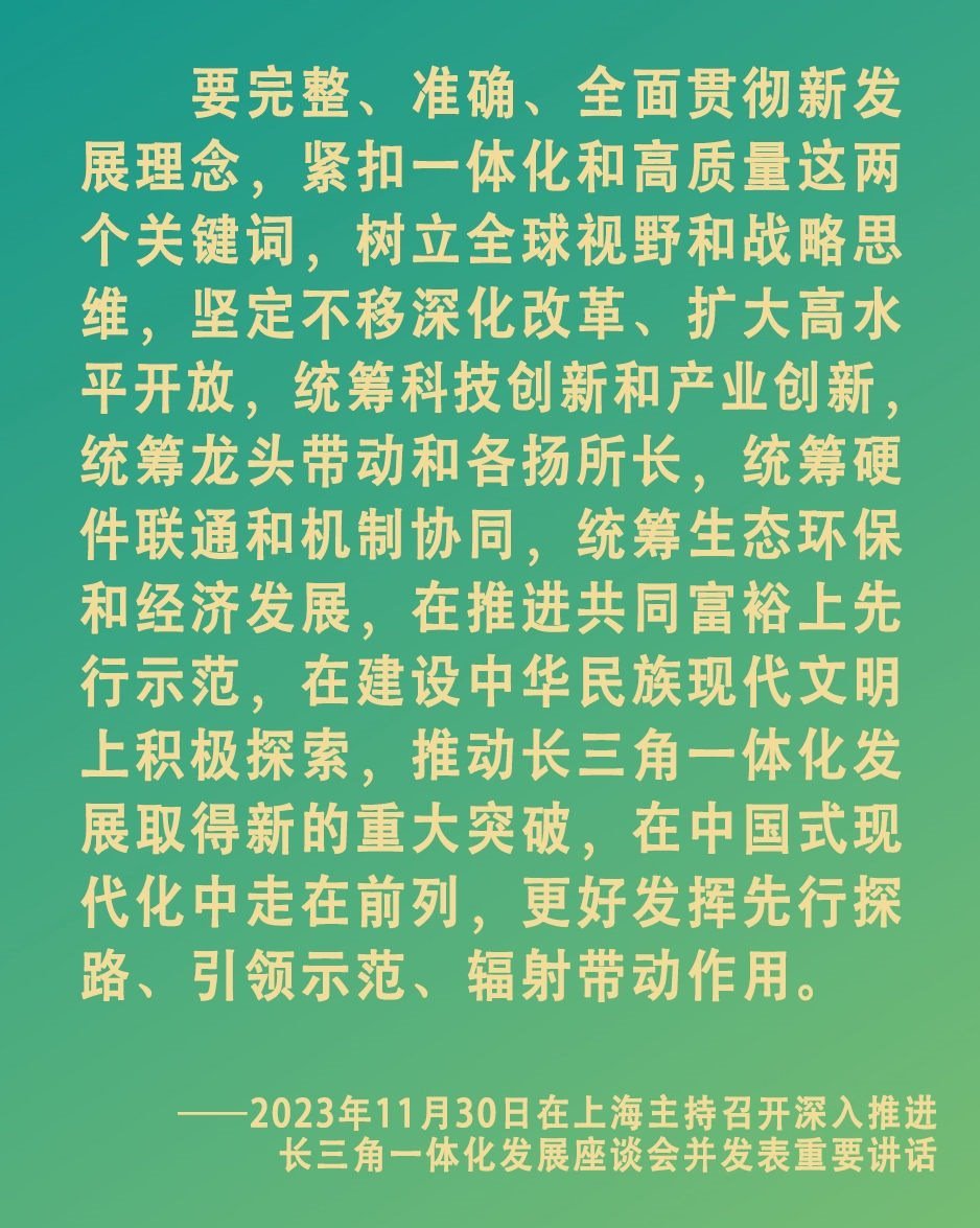 11月30日上午,中共中央總書(shū)記、國(guó)家主席、中央軍委主席習(xí)近平在上海主持召開(kāi)深入推進(jìn)長(zhǎng)三角一體化發(fā)展座談會(huì)并發(fā)表重要講話。