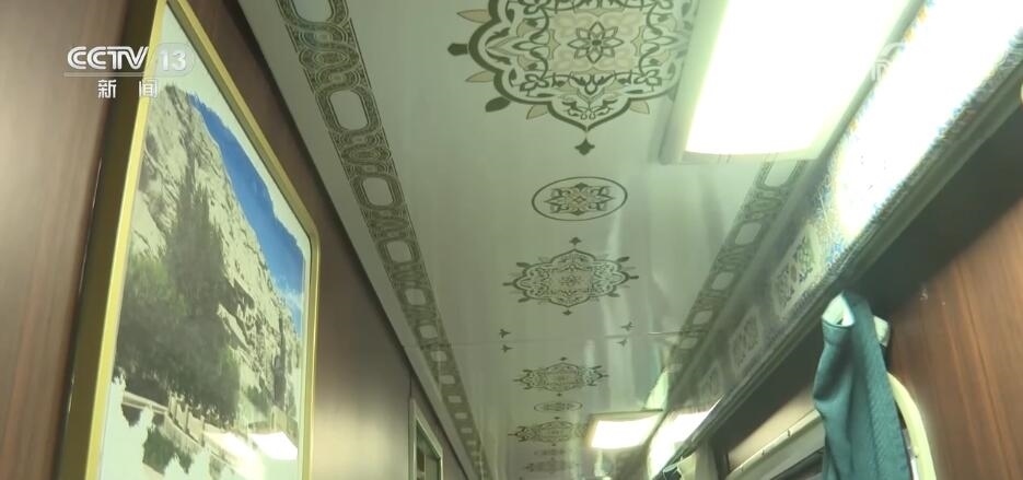“阿克蘇號”作為助推新疆經(jīng)濟(jì)和旅游業(yè)發(fā)展的特色品牌列車,車上的軟硬件設(shè)施都獨(dú)具特色。每節(jié)車廂都裝飾有獨(dú)具新疆地域特色的人文景觀、民俗風(fēng)情的圖文介紹,讓旅客能感受到濃郁的新疆特色。