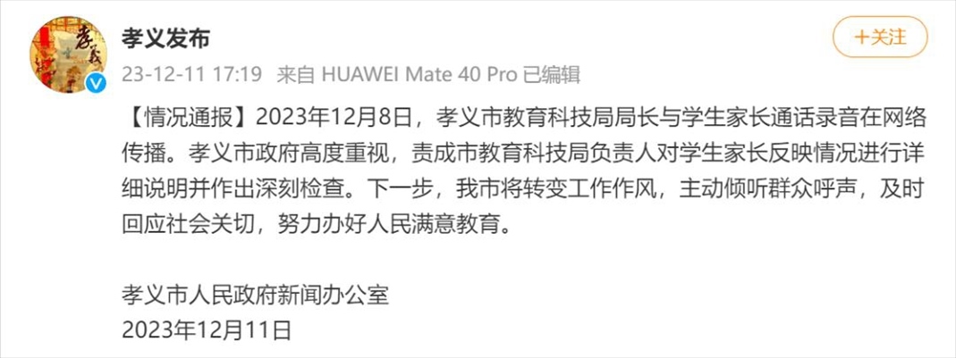 ·山西一家長(zhǎng)反映問(wèn)題時(shí)遭教科局長(zhǎng)爆粗口,官方通報(bào):作出深刻檢查。