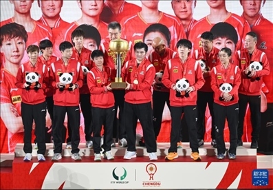 國(guó)乒九戰(zhàn)全勝奪得混合團(tuán)體世界杯冠軍。
