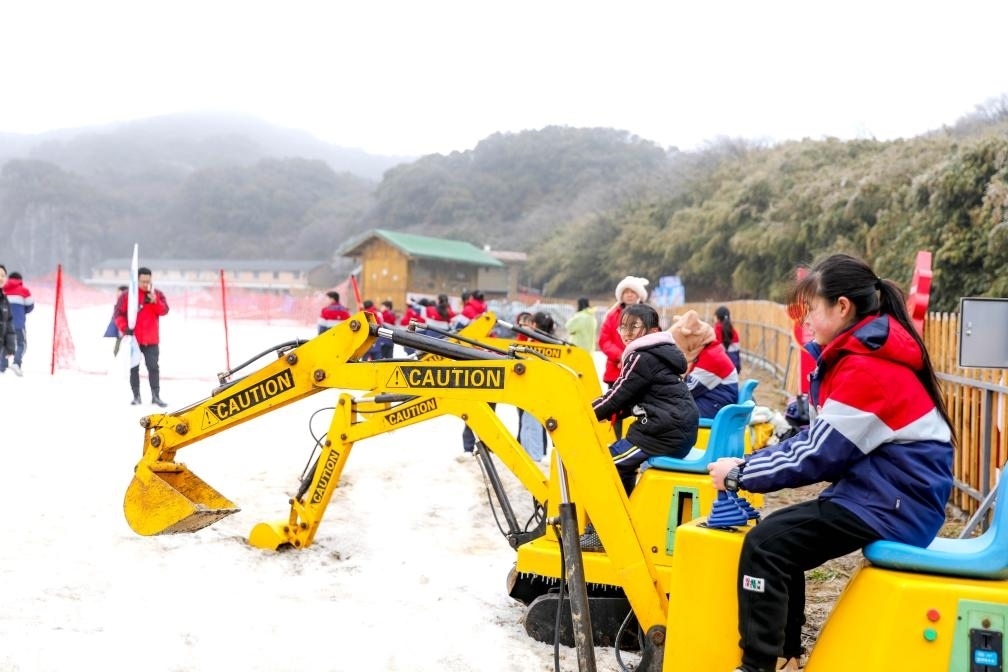 重慶市南川區(qū)金佛山滑雪場里,學(xué)生們正在參加冰雪研學(xué)活動。(甘昊旻 攝)