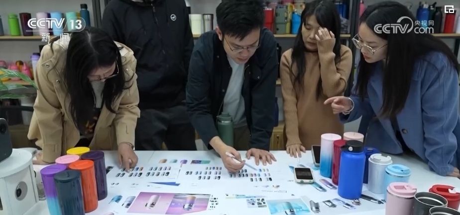這兩天,王博文和設(shè)計團(tuán)隊正在為即將在海外上線的新款保溫杯挑選顏色,等顏色確定就可以開始大批量的生產(chǎn)。