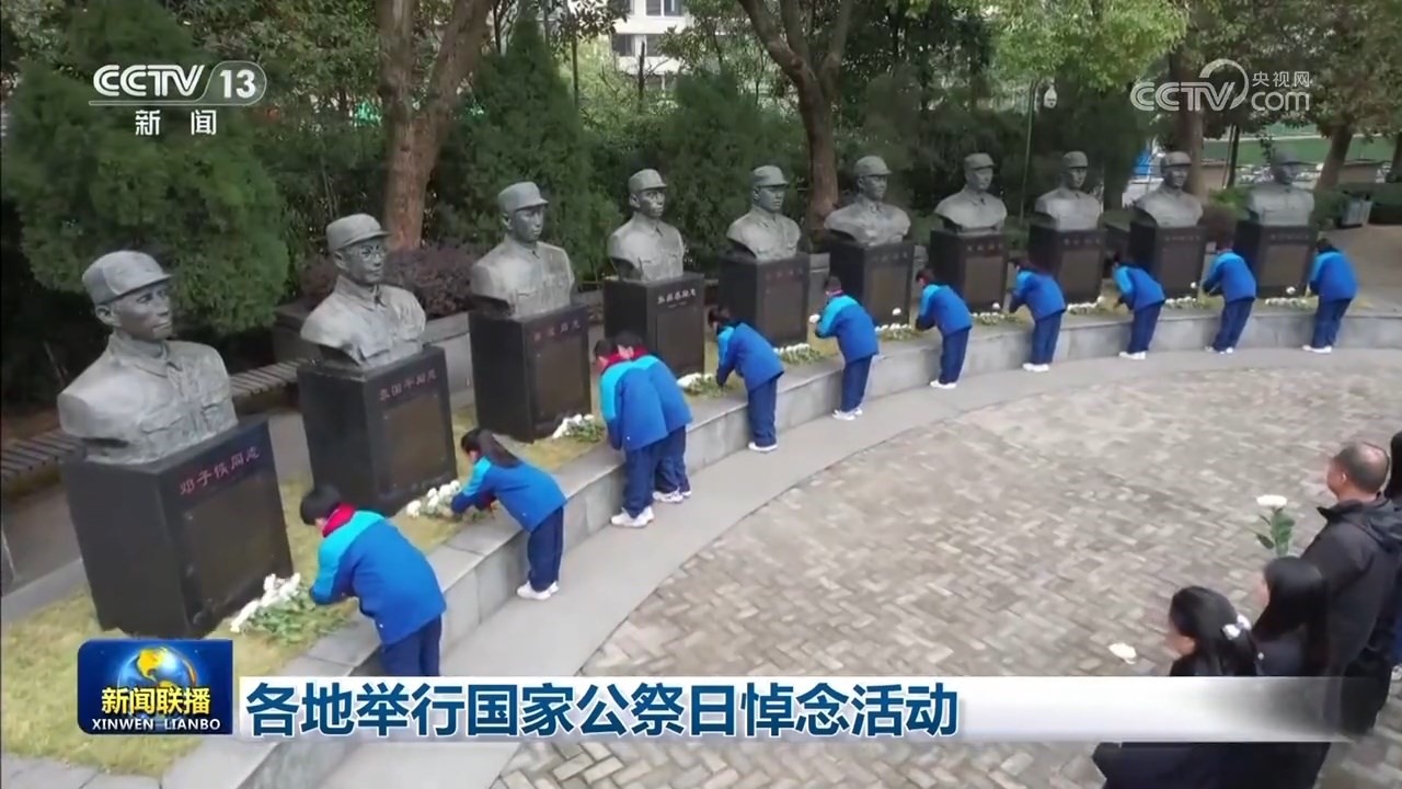 央視網(wǎng)消息(新聞聯(lián)播):今天(12月13日),各地舉行國(guó)家公祭日悼念活動(dòng),銘記歷史、珍愛和平,凝聚奮進(jìn)力量。