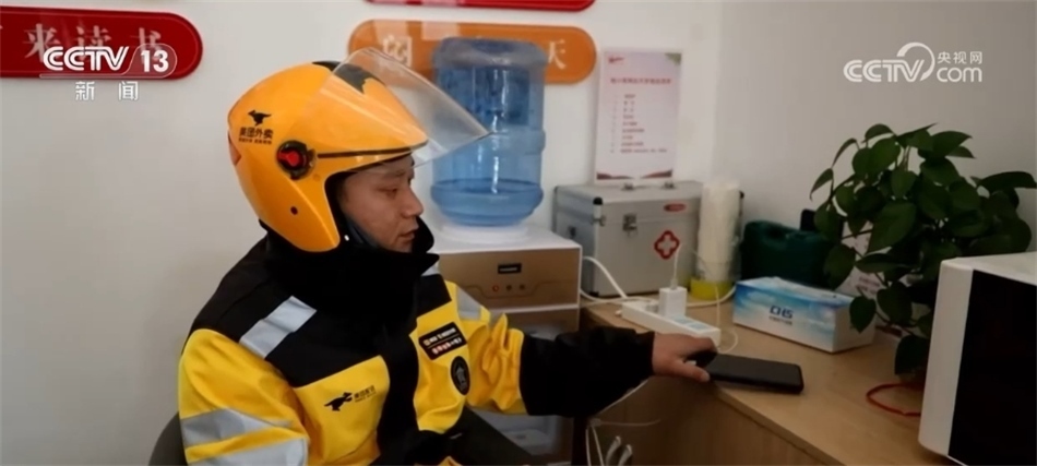由于氣溫持續(xù)走低,外賣訂單量激增。在菏澤市定陶區(qū),當?shù)卮蛟炝?0家休息驛站,為外賣員、快遞員等戶外作業(yè)人員提供熱水、手機充電、熱飯就餐等服務(wù)。