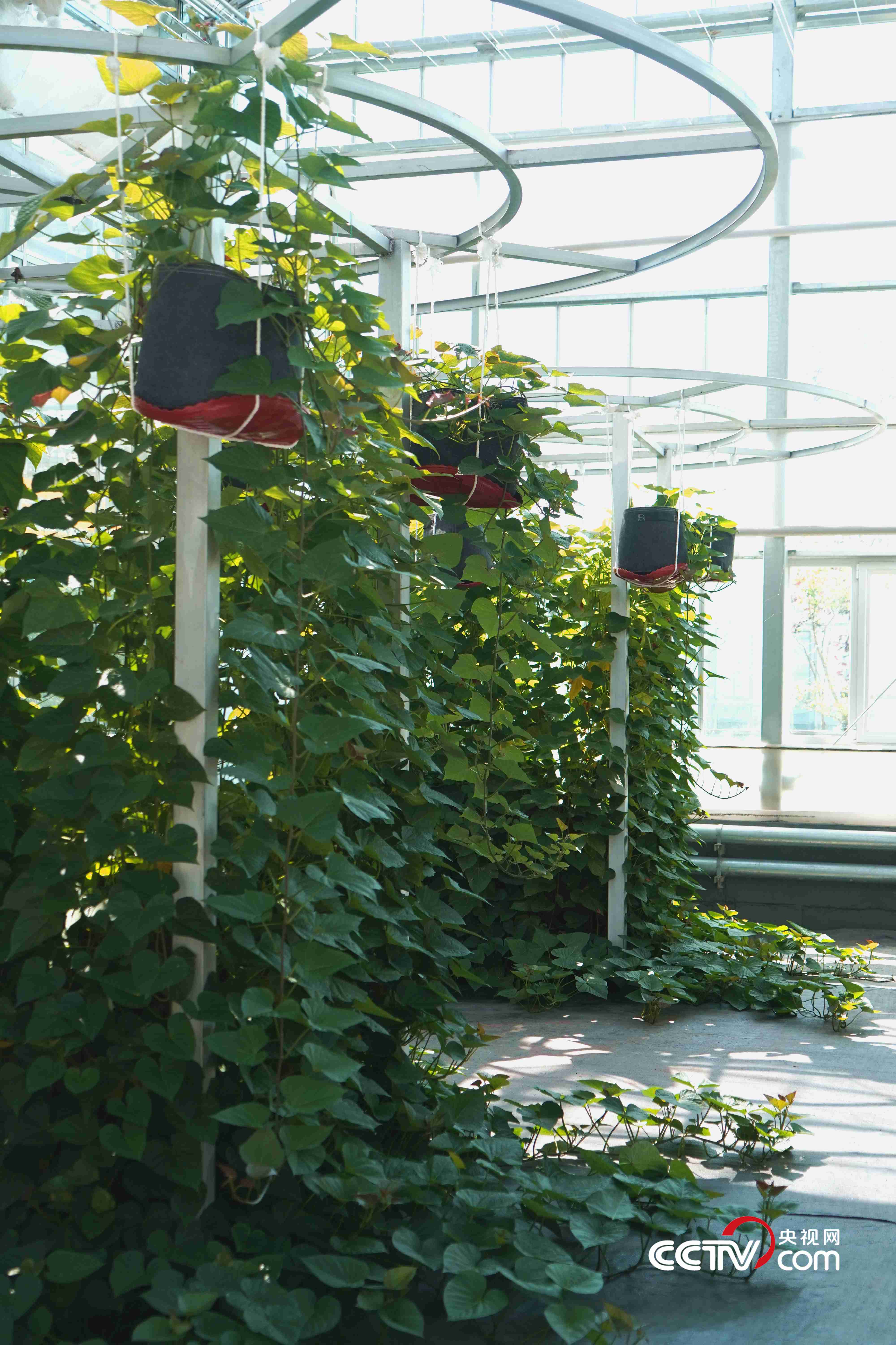 空中紅薯則利用深液流栽培模式,將紅薯由傳統(tǒng)的土壤栽培轉(zhuǎn)變?yōu)樗耘嗟哪J?。陸璐表示,其特點體現(xiàn)在水生根系能為植株提供充足的水肥,壓蔓產(chǎn)生的不定根成為儲藏根,實現(xiàn)了根系的分工合作,能夠達(dá)到一年種植多年采收的效果?!皳?jù)測算,單株冠幅在60平方米的‘紅薯樹’一年可產(chǎn)1200多斤的紅薯?!边@種栽培模式不僅能帶來經(jīng)濟(jì)效益,在農(nóng)業(yè)觀光、科普教育方面也有獨特價值。