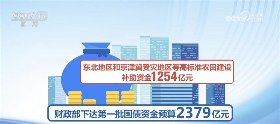 據(jù)介紹,根據(jù)工作機(jī)制確定的第一批2900多個項目,財政部已經(jīng)下達(dá)第一批國債資金預(yù)算2379億元,其中,災(zāi)后恢復(fù)重建和提升防災(zāi)減災(zāi)能力補(bǔ)助資金1075億元、東北地區(qū)和京津冀受災(zāi)地區(qū)等高標(biāo)準(zhǔn)農(nóng)田建設(shè)補(bǔ)助資金1254億元、重點自然災(zāi)害綜合防治體系建設(shè)工程補(bǔ)助資金(氣象基礎(chǔ)設(shè)施項目建設(shè))50億元。
