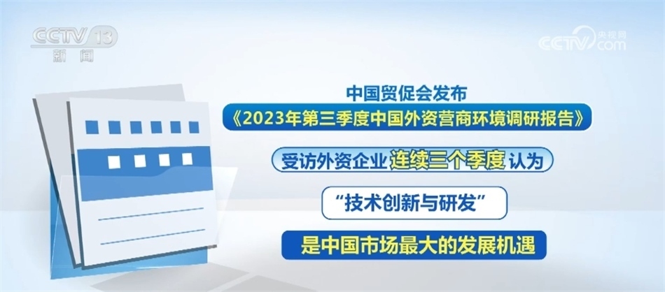 布局未來,如今,越來越多外資企業(yè)正在從“在中國制造”走向“在中國創(chuàng)造”。中國德國商會的調查報告就顯示,53%的德國企業(yè)計劃在未來兩年內(nèi)增加在中國本土化研發(fā)的職能;而中國貿(mào)促會發(fā)布的《2023年第三季度中國外資營商環(huán)境調研報告》則顯示,受訪外資企業(yè)連續(xù)三季度認為“技術創(chuàng)新與研發(fā)”是中國市場最大的發(fā)展機遇。