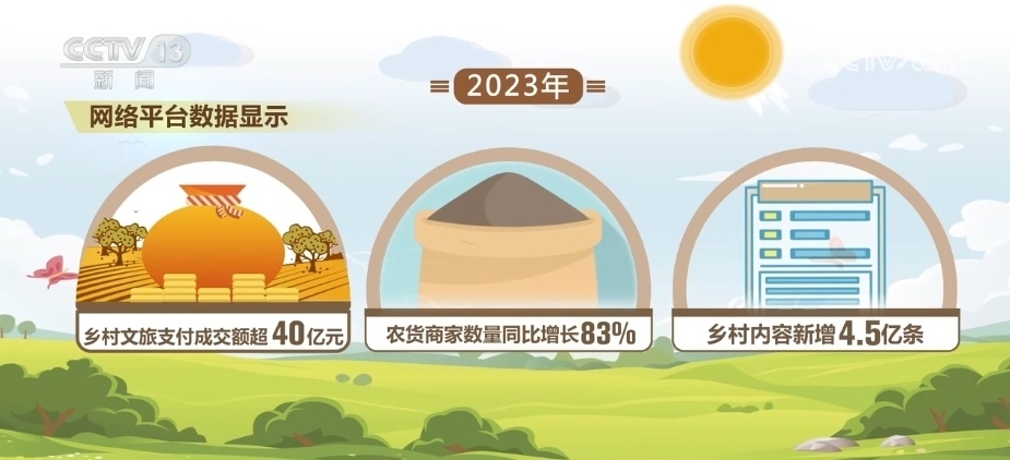 相關(guān)網(wǎng)絡(luò)平臺(tái)數(shù)據(jù)顯示,2023年,鄉(xiāng)村文旅支付成交額超40億元,農(nóng)貨商家數(shù)量同比增長83%,鄉(xiāng)村內(nèi)容新增4.5億條。數(shù)字技術(shù)和平臺(tái)在鄉(xiāng)村電商、鄉(xiāng)村文旅、鄉(xiāng)村人才等方面發(fā)揮了重要作用。
