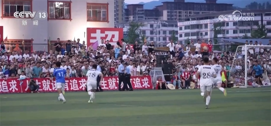 截至目前,全縣對公眾免費開放的標(biāo)準(zhǔn)足球場已經(jīng)達到14個,全縣38.5萬人口中有5萬人會踢足球、喜歡踢足球,有超過40支鄉(xiāng)村足球隊活躍在村超賽場上,榕江縣的人均足球場面積是全國數(shù)據(jù)的4倍多。