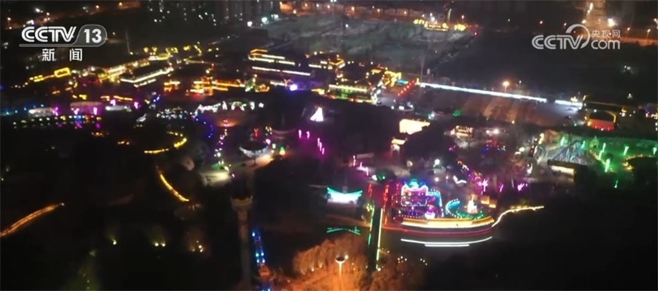 在河南漯河,近兩萬(wàn)盞造型各異的燈飾把城市裝扮得格外喜慶。夜幕降臨,道路兩側(cè)燈光璀璨,古風(fēng)建筑更顯得美輪美奐。此外,當(dāng)?shù)剡€增加了水上國(guó)風(fēng)節(jié)目表演,迎接新年到來(lái)。