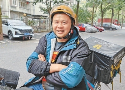 做外賣(mài)騎手的張俊。本報(bào)記者 姜 峰攝