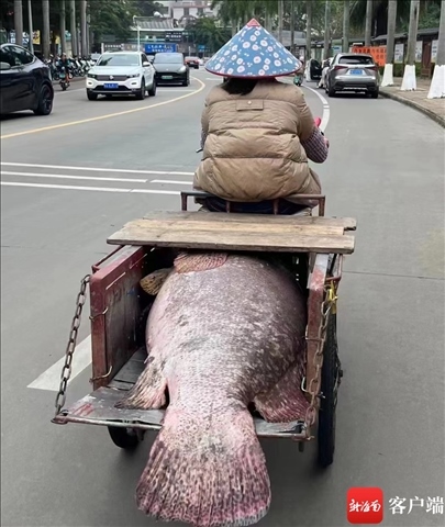 ·近日,海口一漁民釣到一條重約200斤的罕見巨型石斑魚。