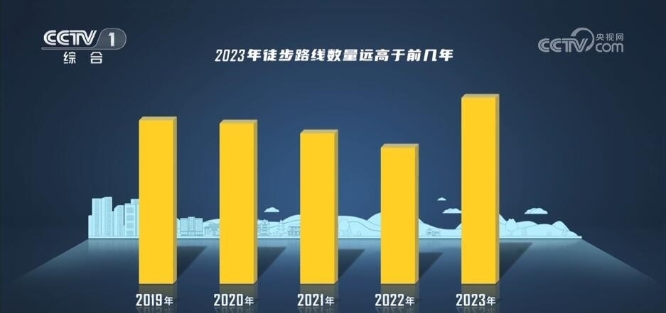 數(shù)據(jù)分析發(fā)現(xiàn),2023年徒步路線的數(shù)量遠高于前幾年,相比2019年的漲幅接近15%。