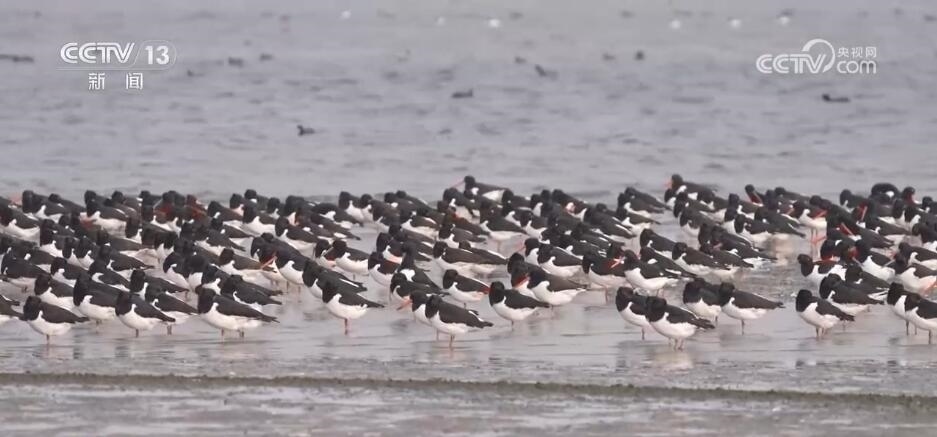 江蘇如東:大批蠣鷸聚集沿海灘涂 場面壯觀