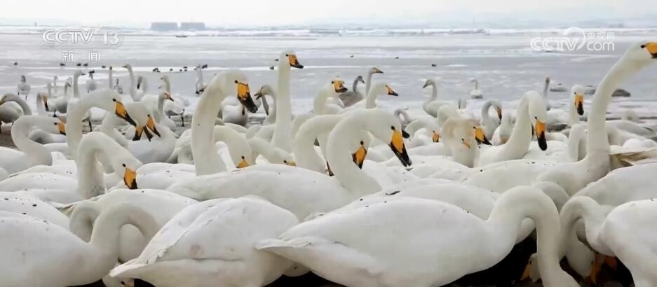 山東榮成:大天鵝雪中嬉戲 警民聯(lián)手守護(hù)生態(tài)美景