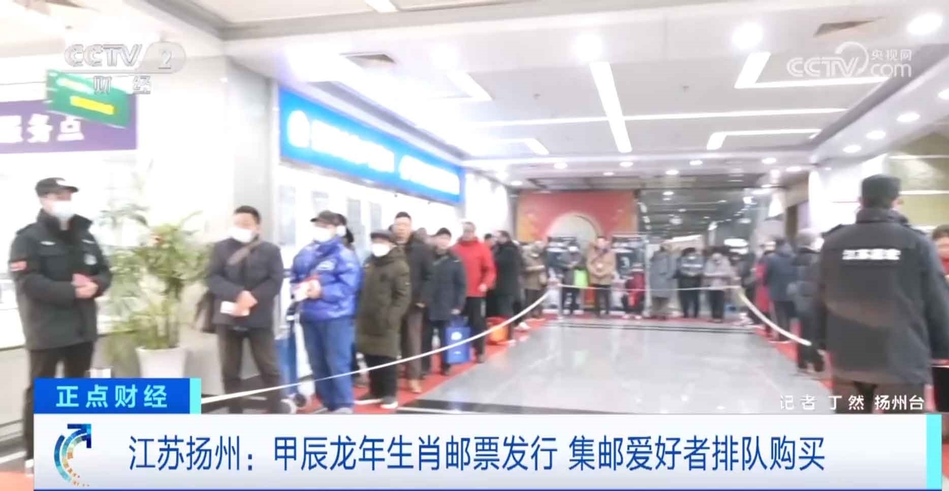 江蘇揚(yáng)州:甲辰龍年生肖郵票發(fā)行 集郵愛(ài)好者排隊(duì)購(gòu)買