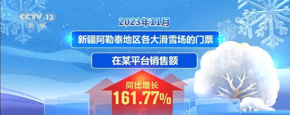 2023年11月,新疆阿勒泰地區(qū)各大滑雪場(chǎng)的門票在某平臺(tái)的銷售額同比增長(zhǎng)了161.77%。