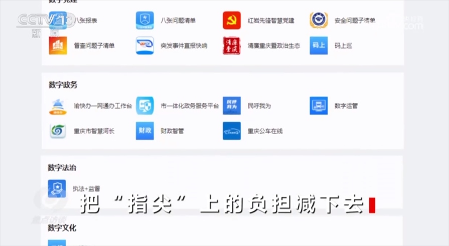 工作重心向基層服務(wù)轉(zhuǎn)變,才能切實看到為基層減負的實效。2021年,重慶市一體化、智能化、數(shù)字化政務(wù)工作平臺“渝快政”正式發(fā)布?!坝蹇煺痹谌蟹秶鷥?nèi)實現(xiàn)了上下層級、橫向跨部門之間的協(xié)同,一個“渝快政”App就可以支持過去40多項高頻次的政務(wù)辦公應(yīng)用,過去各部門App的相應(yīng)功能、各種工作群都整合在了“渝快政”一個App里面。一表通、“141”基層智治平臺也已經(jīng)接入了“渝快政”,正在向全市推廣。現(xiàn)在,文勇手機里的53個工作群已經(jīng)解散,郝歡手機里十幾個部門App也已經(jīng)被整合到“渝快政”。?