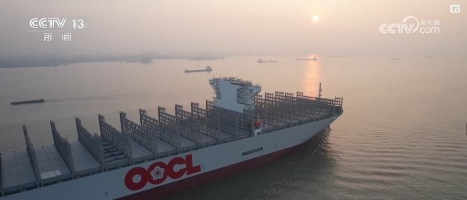 新年首艘 全球最大級(jí)集裝箱船出海試航
