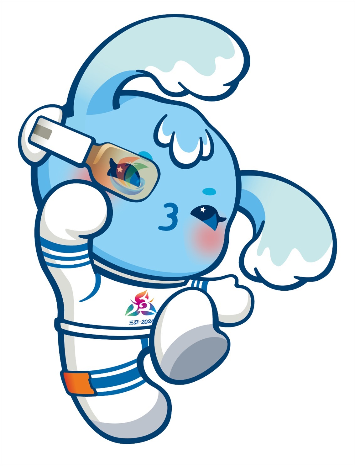 吉祥物由清華大學(xué)美術(shù)學(xué)院團(tuán)隊創(chuàng)作完成。吉祥物“吉貝”是一只海精靈,名字取自《尚書·禹貢》和蘇東坡的詩詞,在歷史上專指“黎錦”這一中華民族優(yōu)秀傳統(tǒng)文化的典型代表,黎錦也是世界級非物質(zhì)文化遺產(chǎn),同時“吉貝”也有“吉祥寶貝”的意思;海精靈身著宇航服,寓意星辰大海,佩戴的AI智能眼鏡中映射出海南自由貿(mào)易港的標(biāo)志,寓意科技與現(xiàn)代化。海精靈展現(xiàn)了中華民族團(tuán)結(jié)奮斗、揚(yáng)帆征程,攜手邁向中國式現(xiàn)代化的精氣神。