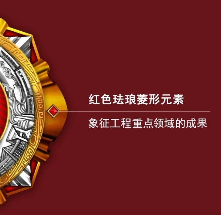 與其它國(guó)家勛章相比,“國(guó)家卓越工程師”獎(jiǎng)?wù)伦畲蟮牟煌褪菦](méi)有用到寶石,改用琺瑯工藝使得金飾有鮮艷的色彩,例如徽章的底色和五角星的填充色,色彩絢麗而不夸張,平整但有較高的飽和度和光澤。