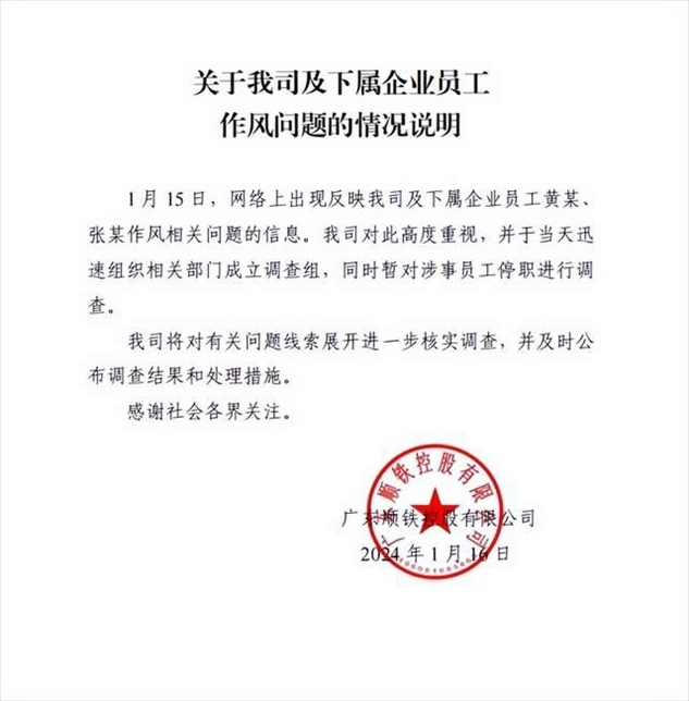 ·廣東一國(guó)資公司中層領(lǐng)導(dǎo)被指婚內(nèi)出軌女同事?涉事公司發(fā)布情況說(shuō)明。