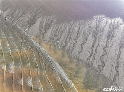 冬日的錢(qián)塘江凍出“冰雪潮汐樹(shù)”。