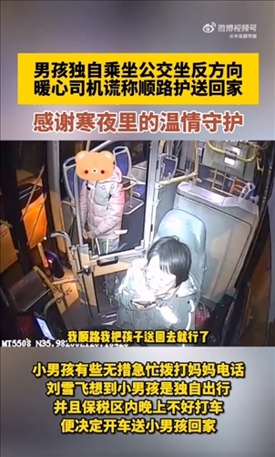 近日在山東青島,黃島公交東2路駕駛員劉雪飛即將到達(dá)終點(diǎn)時(shí),車(chē)上一位小男孩遲遲沒(méi)下車(chē),詢(xún)問(wèn)發(fā)現(xiàn)他坐反了車(chē)。男孩慌忙給媽媽打電話,劉雪飛想到男孩獨(dú)自出行晚上也不好打車(chē),決定開(kāi)車(chē)送他回家。雖然并不順路,劉雪飛還是跟孩子?jì)寢屨f(shuō)可以順路送他,最終將男孩平安送回家。感謝善意的謊言,感謝寒夜里的溫情守護(hù)!