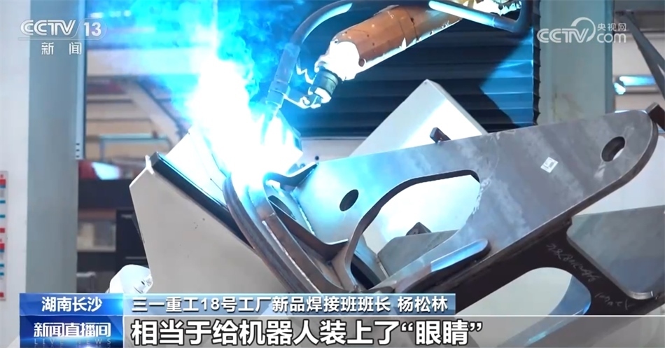 三一重工18號工廠新品焊接班班長 楊松林:這就是我工作的地方。這邊有一排排的工作島,穩(wěn)居“C”位的就是我們的轉(zhuǎn)臺焊接工作島。依托數(shù)字化電弧跟蹤技術(shù),相當(dāng)于給機器人裝上了“眼睛”,焊槍可以自己去尋找鎖定,并跟蹤焊點,實現(xiàn)連續(xù)性的焊接,在行業(yè)還是首創(chuàng),我們的效率和質(zhì)量都大大提升了。