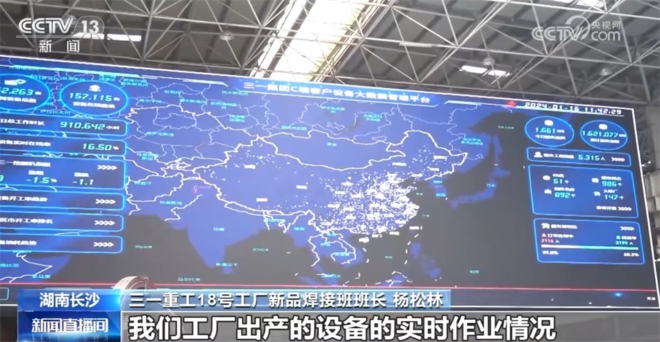 三一重工18號工廠新品焊接班班長 楊松林:來我們“燈塔工廠”參觀,我們都會看到一個超級大的屏幕,每一個閃光點都代表著我們工廠出廠的設(shè)備的實時作業(yè)情況。這些閃光點最后就形成了一個三一的挖掘機指數(shù),就相當(dāng)于我們業(yè)內(nèi)工程行業(yè)的一個晴雨表,其實我們還是挺自豪的。