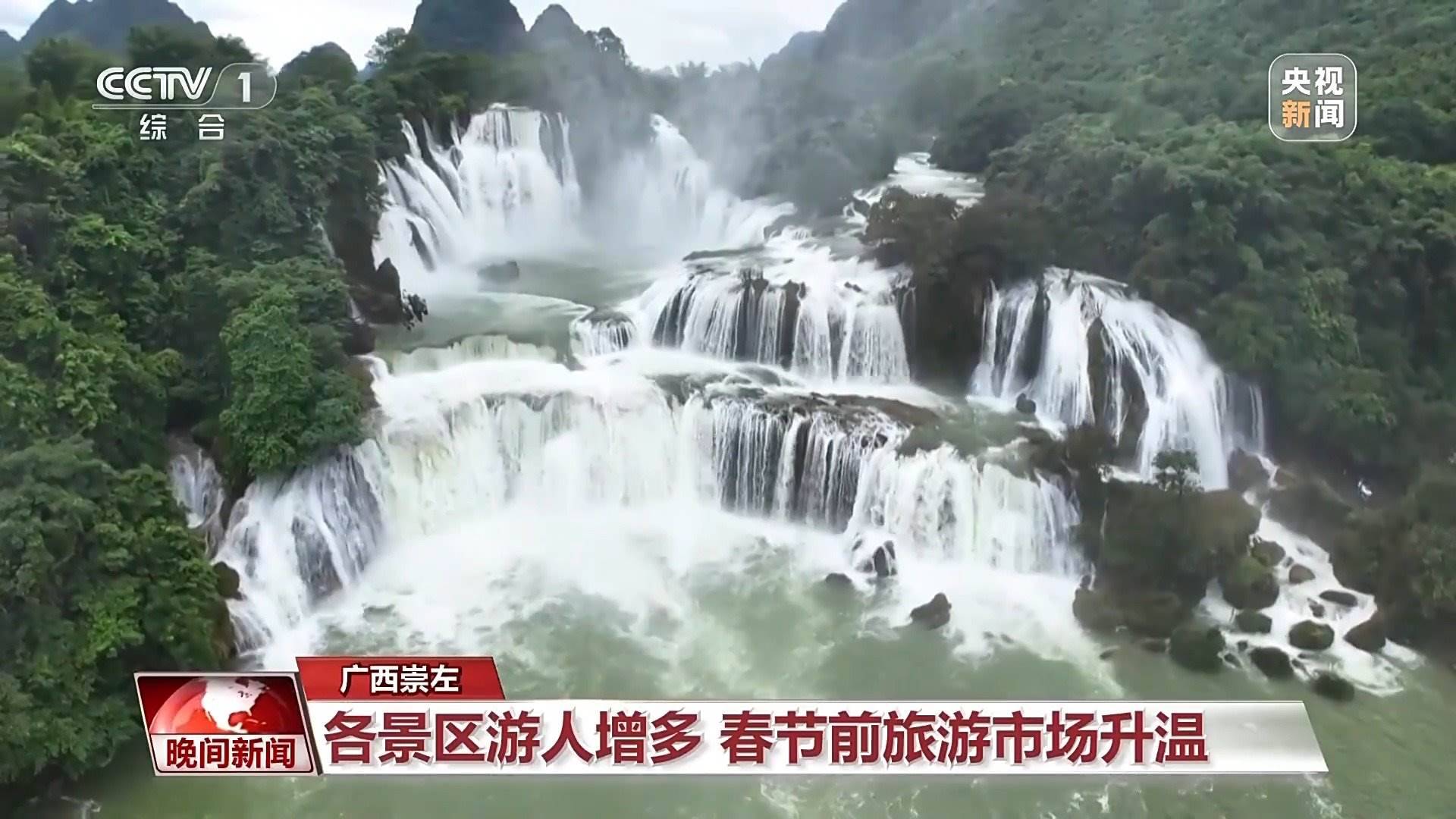 冰天雪地的北國風(fēng)光讓人著迷,而四季如春的南派風(fēng)景,同樣令人沉醉。在廣西崇左的大新縣,多個景區(qū)里,前來游玩的游客絡(luò)繹不絕。有的眺望氣勢磅礴的瀑布,有的聆聽特色的壯族民歌,還有的探訪豐富多彩的壯鄉(xiāng)文化,感受祖國大美山河的魅力。