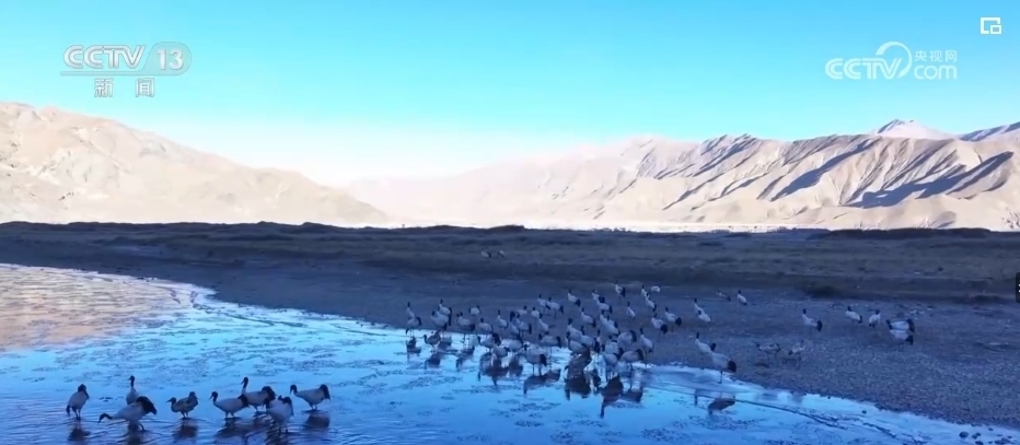 西藏的越冬水鳥(niǎo)主要有黑頸鶴、斑頭雁、赤麻鴨等。監(jiān)測(cè)隊(duì)設(shè)立了505個(gè)觀測(cè)點(diǎn),共記錄調(diào)查軌跡數(shù)407條,觀測(cè)到水鳥(niǎo)45種。其中,包括兩種國(guó)家一級(jí)保護(hù)動(dòng)物,分別是黑頸鶴和白尾海雕。7種國(guó)家二級(jí)保護(hù)動(dòng)物,分別是灰鶴、鴛鴦、白額雁、斑頭秋沙鴨、黑頸鸊鷉、角鸊鷉、花臉鴨。還有重要生態(tài)、科學(xué)、社會(huì)價(jià)值的陸生野生動(dòng)物36種。